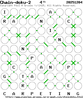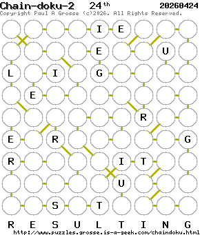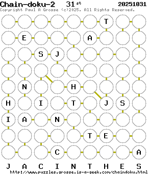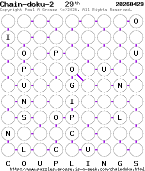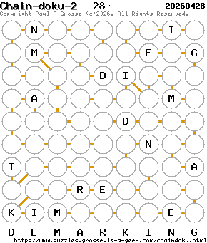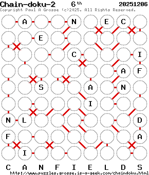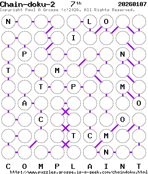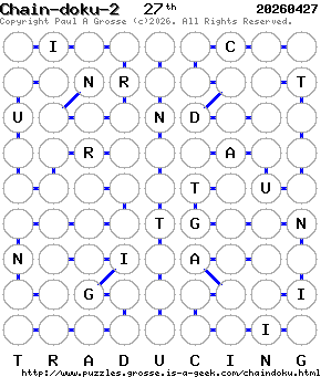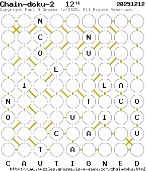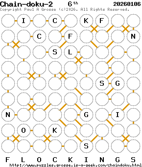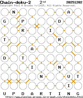 To download a PDF of the last six Chain-doku-2 puzzles on one sheet, click here or on the image on the right.
