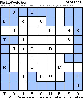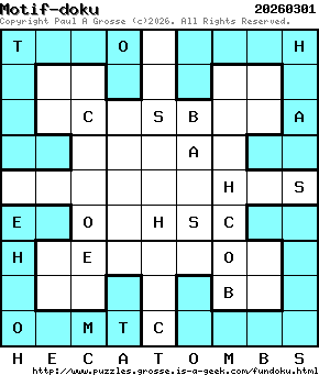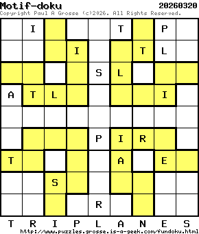 To download a PDF of the last six Motif-doku puzzles on one sheet, click here or on the image on the right.