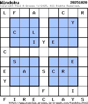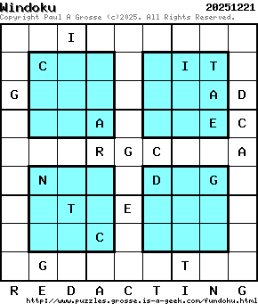 To download a PDF of the last six Windoku puzzles on one sheet, click here or on the image on the right.