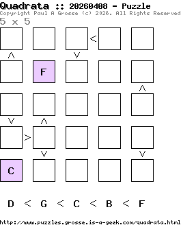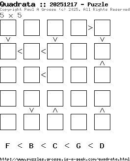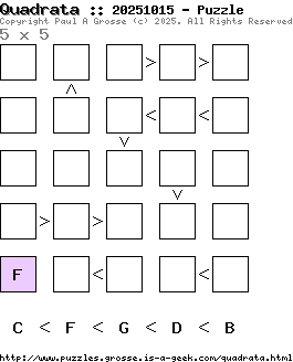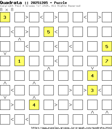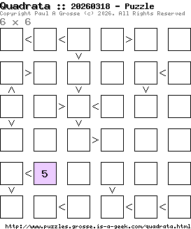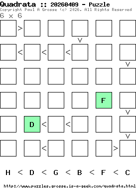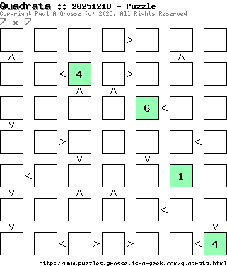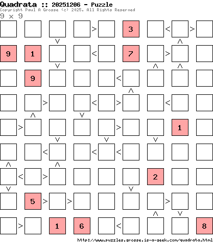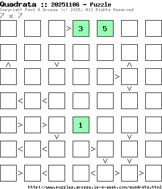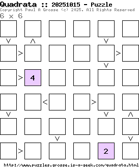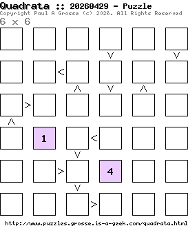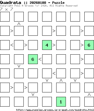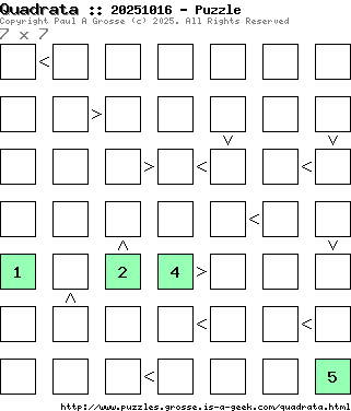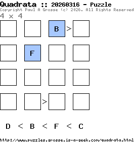 These are the six, most recent Quadrata puzzles generated by my program. If you need to find a solution for one of them, look at the date in the puzzle and find the solution for that puzzle on the archive page.