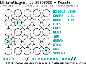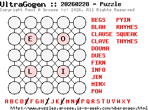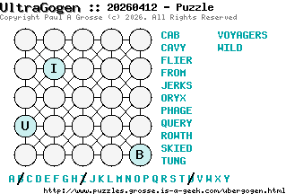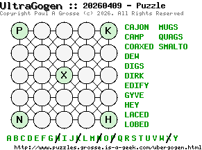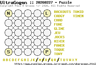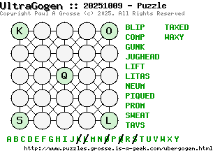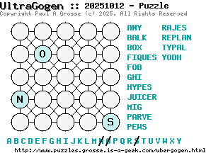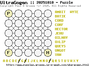 These are the six, most recent UltraGogen puzzles generated by my program. If you need to find a solution for one of them, look at the date in the puzzle and find the solution for that puzzle on the archive page.