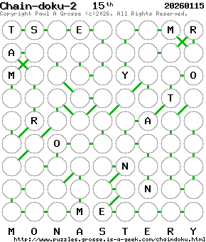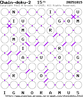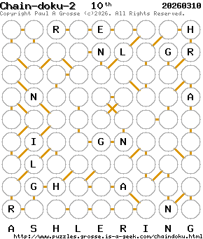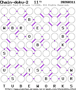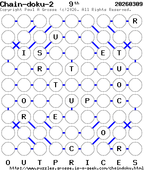To download a PDF of the last six Chain-doku-2 puzzles on one sheet, click here or on the image on the right.