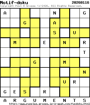 To download a PDF of the last six Motif-doku puzzles on one sheet, click here or on the image on the right.