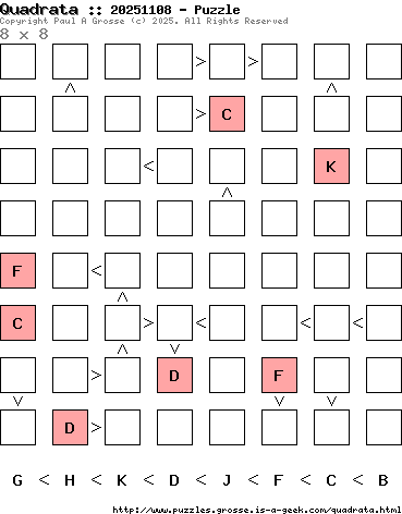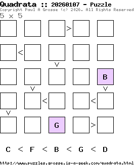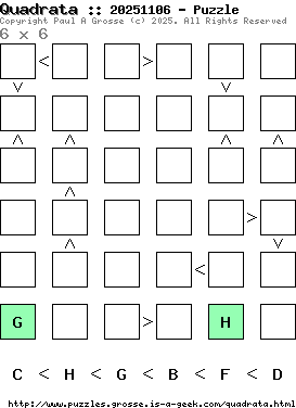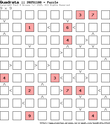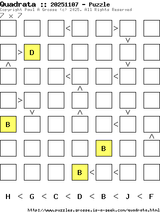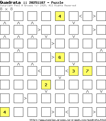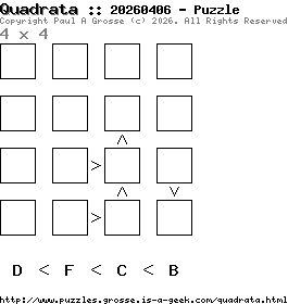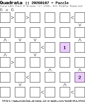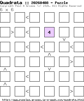 These are the six, most recent Quadrata puzzles generated by my program. If you need to find a solution for one of them, look at the date in the puzzle and find the solution for that puzzle on the archive page.