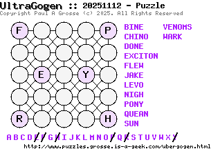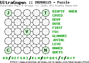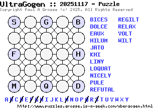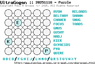 These are the six, most recent UltraGogen puzzles generated by my program. If you need to find a solution for one of them, look at the date in the puzzle and find the solution for that puzzle on the archive page.